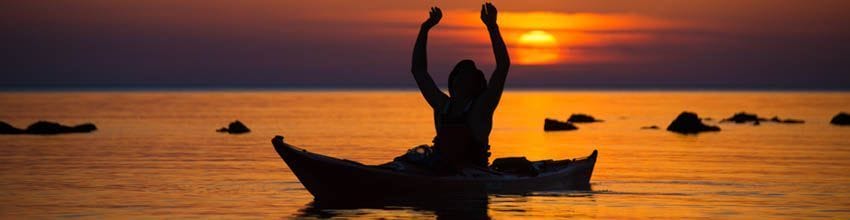 - Utilitzem caiacs de mar, tipus travessia (tancats) per a les nostres rutes guiades de diversos dies. Aquest tipus de caiac és l’adequat per a viatges de diversos dies, més eficients, dissenyats per a la navegació de diverses hores i amb tots els elements de seguretat inclosos (compartiments estancs integrats, línia de vida, materials resistents)
