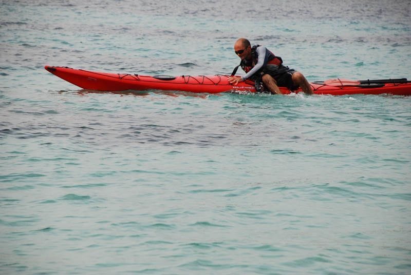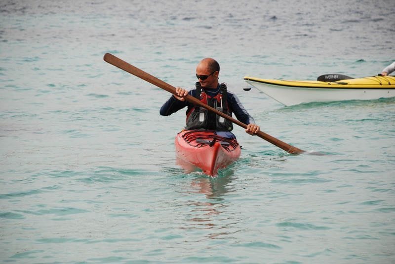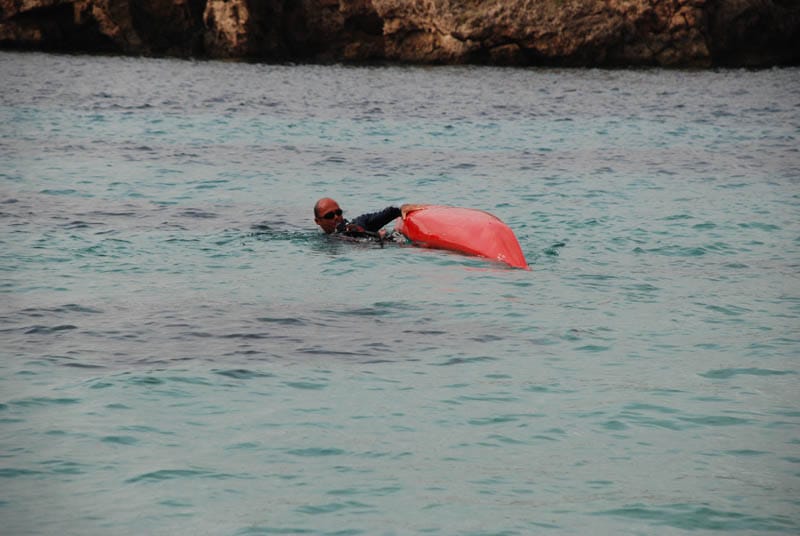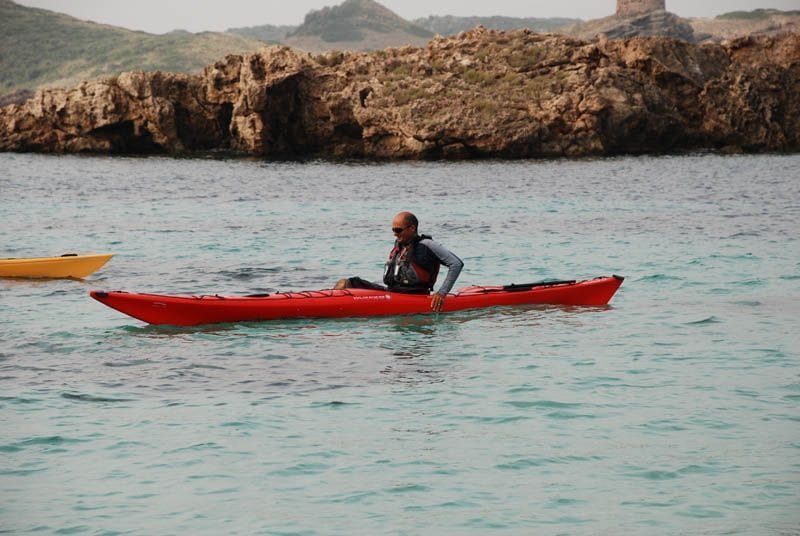 Material: kayak de mar, chaleco, cubre-bañera, pala.