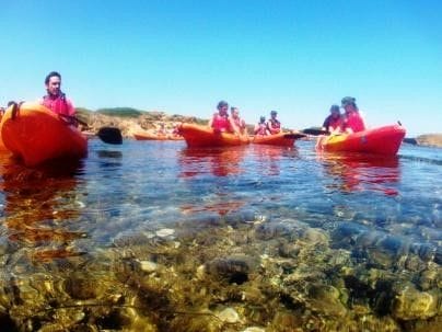 Recorrido en kayak doble autovaciable por la zona de Es Grau y la Isla Colom. Desde la tranquila bahía de Es Grau iniciamos la ruta con una sencilla explicación técnica de paleo.