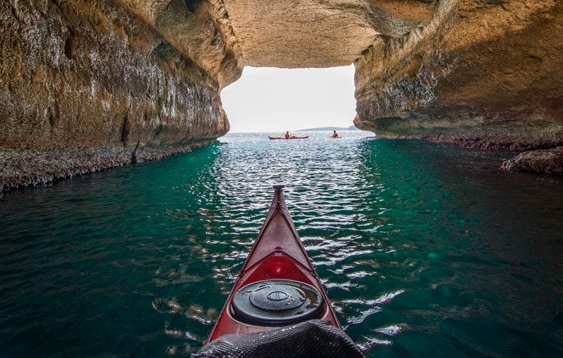 Si vienes con tu propio kayak, éste debe cumplir con los requisitos obligatorios de equipamiento: todos los compartimentos tienen que ser estancos, equipado con línea de vida en perfecto estado, mecanismos extras (orza o timón) tienen que funcionar correctamente. Si tu kayak está equipado con alguno de estos dos mecanismos (o los dos), tienes que traer tu kit de reparaciones con las herramientas adecuadas.
